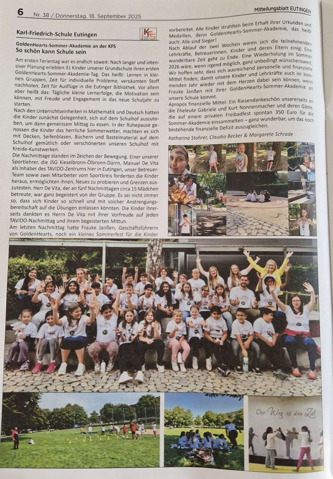 18.09.2025: GoldenHearts-Sommer-Akademie an der KFS - So schön kann Schule sein